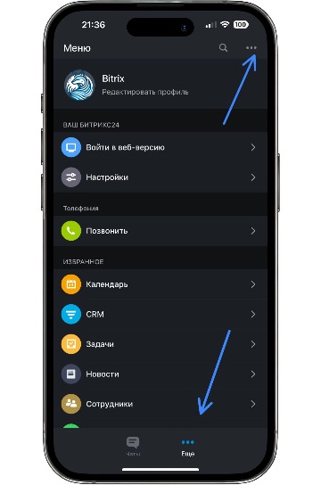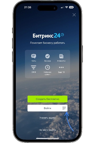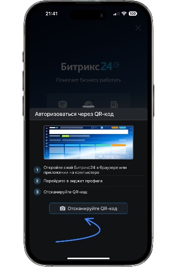 После установки приложения Bitrix24 на смартфон отсканируйте QR-код с экрана ПК: