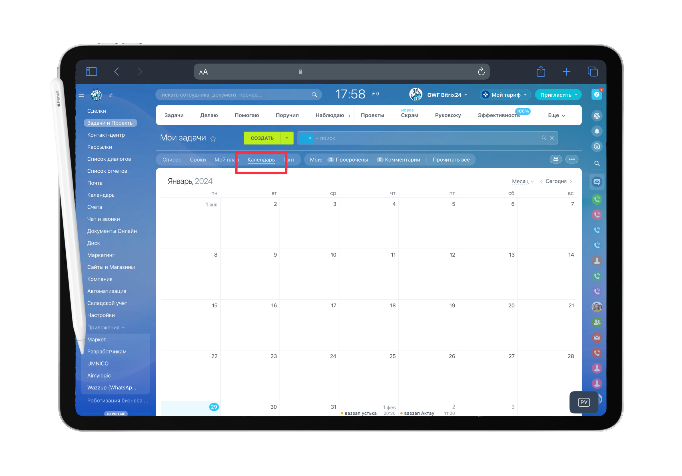 "В Битрикс24 вы также имеете возможность изменить способ просмотра задач в соответствии с вашими предпочтениями. Если вам удобнее видеть задачи в виде календаря, просто переключитесь на соответствующий режим одним кликом. Эта гибкость позволяет настроить систему так, чтобы она максимально соответствовала вашему стилю работы."