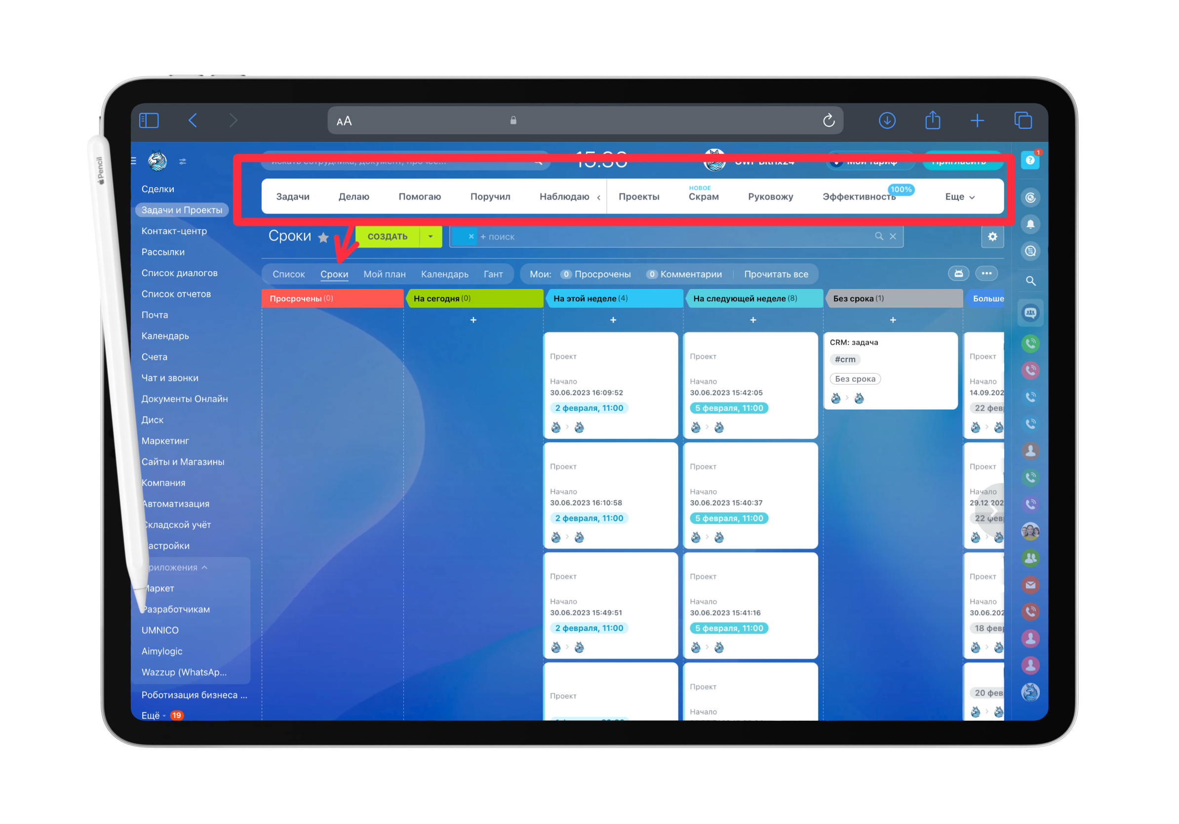 "Все ваши задачи и проекты будут удобно сгруппированы в разделе 'Задачи' в Битрикс24. Это позволит вам всегда быть в курсе текущих дел, счетов к оплате и других важных задач. Кроме того, вы сможете ставить задачи не только для себя, но и для других сотрудников, что обеспечивает эффективное управление рабочими процессами."